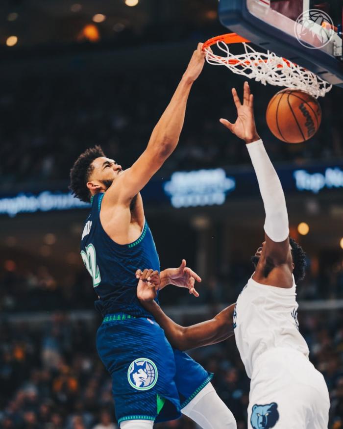 第二节,森林狼和灰熊展开持久拉锯战,半场打完两队分差只有3分,值得一提的是,上半场快结束时,爱德华兹单手帽倒莫兰特,如此防守令人惊叹,两人半场都拿到19分。