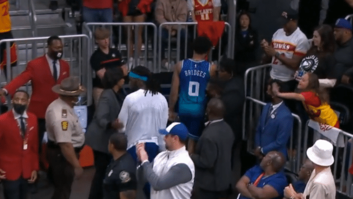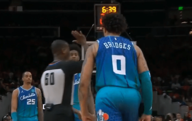 比赛进行到第四节还剩6分多钟时,布里奇斯在一次试图封盖被吹犯规之后,直接朝着裁判疯狂怒吼。裁判铁面执法,直接给了布里奇斯两个技术犯规,将他驱逐出场。离场时,老鹰球迷还对着布里奇斯起哄。比赛此时已经完全失去悬念,分差维持在30分左右。最终,老鹰主场轻松击败黄蜂。
