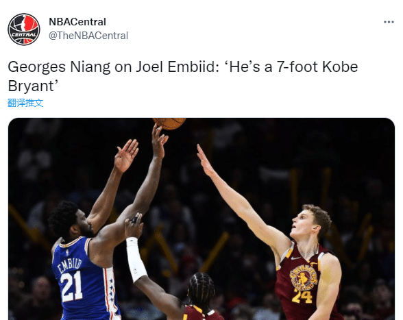 不过76人球员尼昂则盛赞恩比德是7英尺的科比-布莱恩特。