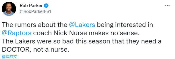 来源:JRS直播网04-12 15:18JRS直播网04月12日讯 ,纳斯和里弗斯也是湖人潜在新帅候选人,对于湖人选帅,NBA记者Rob Parker发推写道:传言湖人有意让纳斯当新帅毫无意义,湖人打出糟糕的赛季,他们需要一个医生,而不是一名护士。