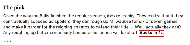 考虑到公牛常规赛的状态,官网认为他们没法对雄鹿构成任何威胁,并预测这轮系列赛将很快结束,雄鹿有望4-0横扫公牛。大家认为这轮系列赛能打几场?欢迎留言发表见解。