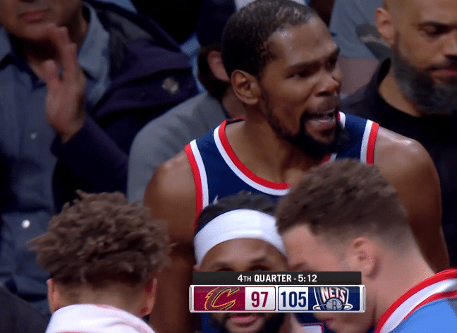 下半场,第三节杜兰特空切上反篮,单节又打满12分钟,7投3中贡献8分,面对高强度防守,还要扛起球队进攻大旗,由于欧文状态糟糕,小帅打得真的太累;篮网单节21-34净输13分,落后5分进入末节,从最多领先17分到落后5分。
