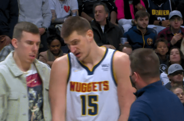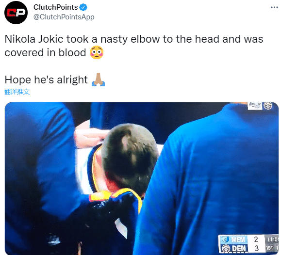 意外!约基奇头部惨遭肘击血流不止,止血治疗后戴红色发带出战