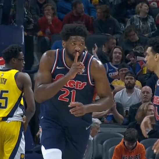 今日一战,76人第一节和步行者打得十分胶着,恩比德单节贡献9分,到了第二节,76人进攻火力更加猛烈,单节49-28净胜步行者21分,恩比德单节独砍18分,半场轰下27分7篮板。