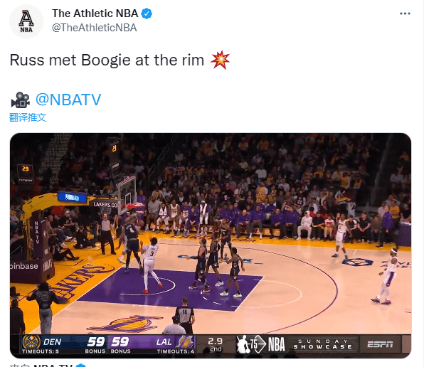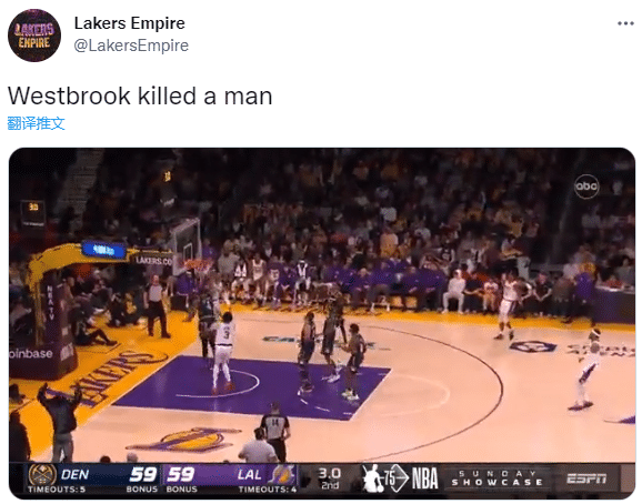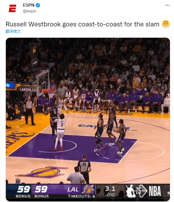 威少隔扣考辛斯引热议,众美媒疯狂转发这一幕,美媒甚至发推写道:威少杀了一个人;湖人官方盛赞威少起飞,上演海报式隔扣。