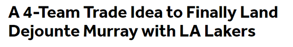 美媒列四方交易方案:湖人送走拉塞尔等人得到穆雷 老鹰得到丁威迪