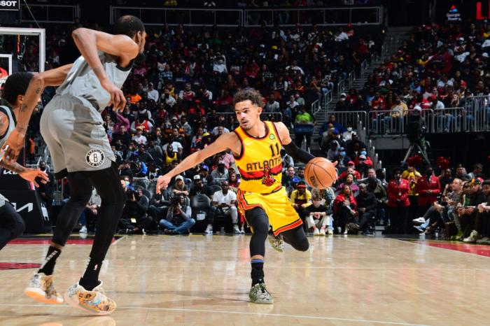 末节,篮网一直苦苦追分,杜兰特继续留在场上,直接不休息了;7分16秒篮网落后14分,欧文投进三分,杜兰特干拔中投和底角三分也有,篮网7-0反扑;关键时刻,杜兰特继续得分,飞身暴扣,特雷-杨制胜得分,欧文连续得分,无奈所剩时间太少,最终篮网输球,正式无缘直通季后赛,确定打附加赛争夺季后赛席位。