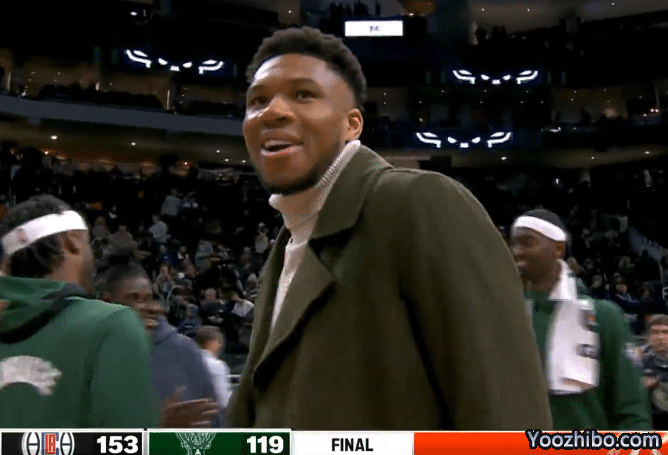 雄鹿输球赛后,字母哥笑着离场,心情不受惨败的影响,今天雄鹿在主场为字母哥播放视频,祝贺他成为队史得分王,可惜雄鹿球迷庆祝之夜,看到主队被吊打。