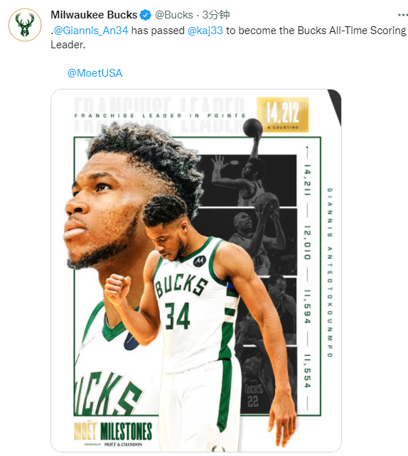 第一、字母哥总得分正式超越贾巴尔,成为雄鹿队史得分王。