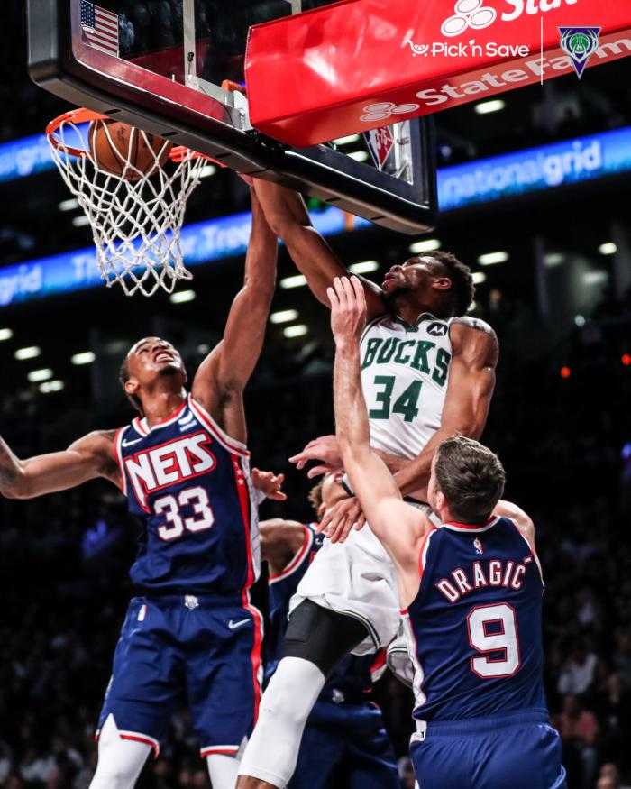 第二节,字母哥开启进攻模式,一招碾压式突破暴扣太无解,禁区保护篮板并且补扣得分,篮网全队真没人能防住他,单节6投5中高效轰下16分,疯狂暴扣肆虐篮筐,这样的希腊神兽太不可阻挡。