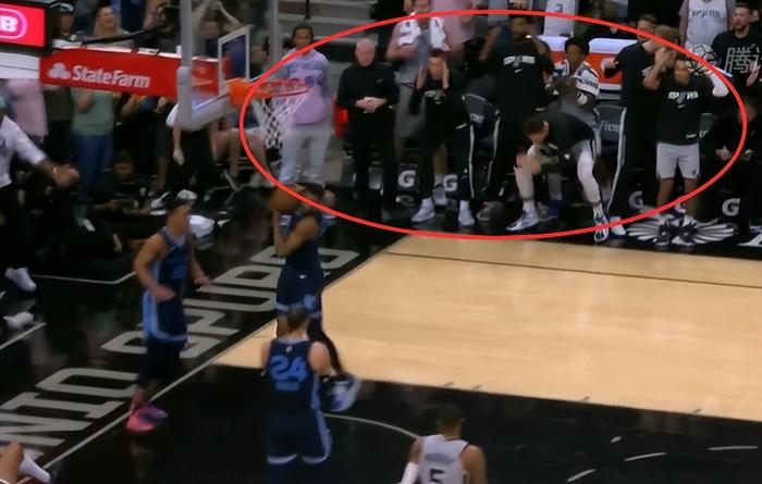 但就是这个把握性很大的上篮,篮球鬼使神差涮了一圈,滚出了篮筐。马刺就此以1分惜败给灰熊,连胜遭到终结。马刺球员和球迷也是非常沮丧,他们纷纷抱头,显得极为失落。凯尔登约翰逊同样抱头沮丧,随后用衣服蒙住头。