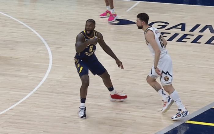 掘金赢球赛后,掘金后卫海兰德拥抱裁判托尼兄弟。