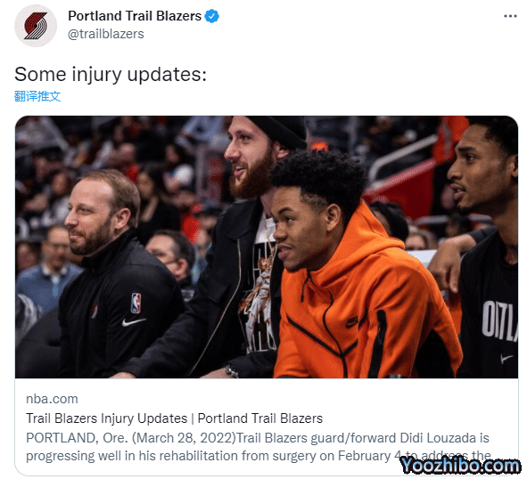 开拓者官宣,努尔基奇(脚部伤病)、安芬尼-西蒙斯(膝盖伤病)和布莱德索(跟腱伤病)因伤赛季报销,他们都因伤缺席至今,都不会出战剩余的比赛;另外开拓者宣布约什-哈特因左膝髌腱伤势将至少再缺席一周,此前名记确认利拉德本赛季不会复出。