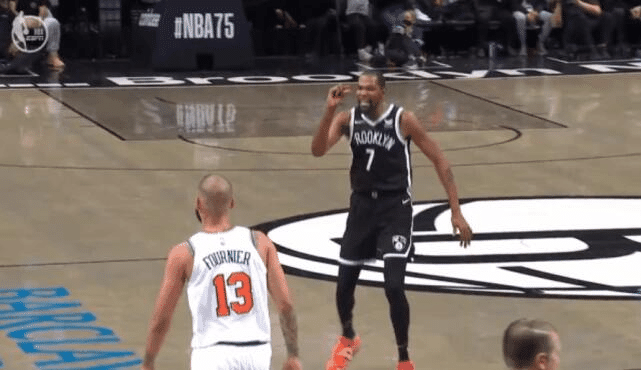 曝杜兰特被嘲讽一幕!23岁悍将进球做太矮手势 KD比他还高7公分