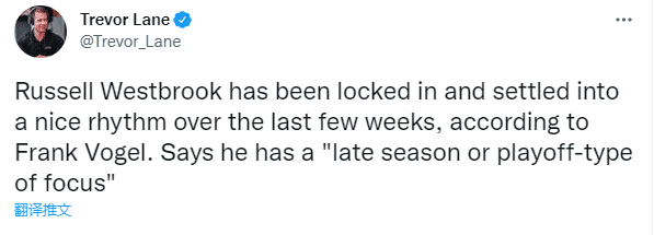 最近一段时间,威少的表现很不错,沃格尔表示:威少在过去的几周里十分专注并进入了一个很好的节奏,他有一种“赛季末或季后赛式的专注”。