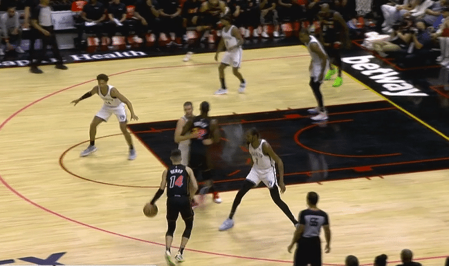 比赛中后段热火这边连续出现失误,将近5分钟的时间球队没有进球,布朗篮下打中,克拉克斯顿打板得分,分差一度来到了21分,半场比赛打完,篮网67:46领先热火21分,单节比赛篮网轰出了40:21的比分,杜兰特18分钟19分4板4助2断1帽。欧文单节得到10分。