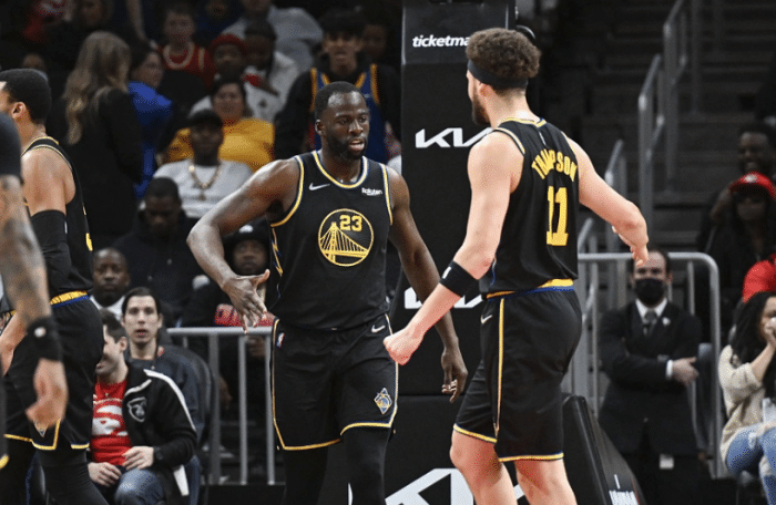 第二节,勇士一度领先到11分,随后老鹰追分,普尔突破上篮,外线运球后急停干拔三分,不过勇士半场最后2分钟集体哑火,被老鹰打出11-0攻击波;勇士半场67-69落后2分,普尔和汤普森都是半场轰下22分,两人合计投进10记三分。