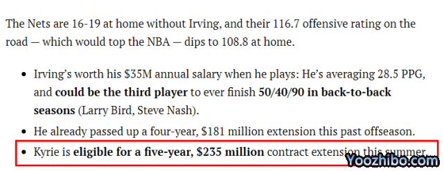 官宣!欧文获准出战主场比赛,今夏有资格签5年2.35亿顶薪