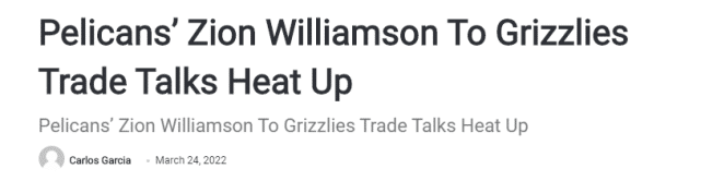 具体方案是老鹰送出约翰-科林斯、杰伦-约翰逊、赫尔特和两个首轮,得到锡安、格拉汉姆和小南斯。