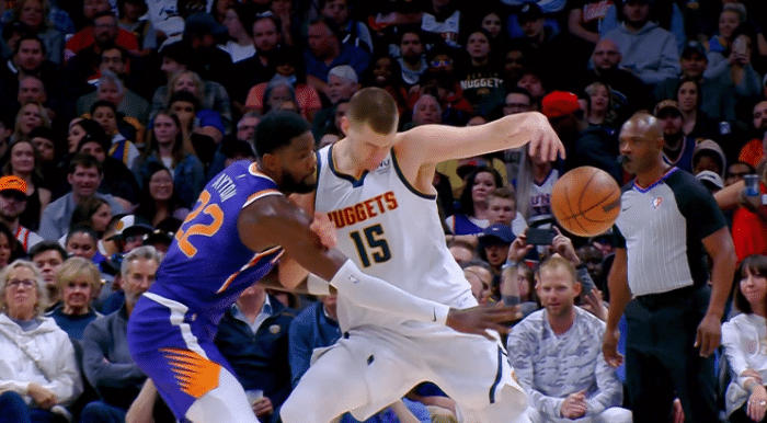 下半场,布克第三节再次开启得分模式,单节9投6中独砍19分,还有3次抢断1盖帽,当太阳陷入困境时,布克把整支球队都扛在肩上,进攻端火力全开,防守端,连续拼抢争夺球权,篮下生抢并且打成2+1,此时布克怒吼庆祝,还正面抢断约基奇并且双手暴扣。