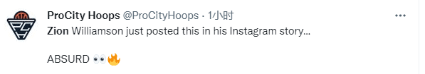 美媒转发锡安扣篮视频,露天看台发推:锡安重返训练馆;Procity Hoops发推:太荒谬了;医学专家Evan Jeffries表示,锡安的脚已经为下赛季准备好了。