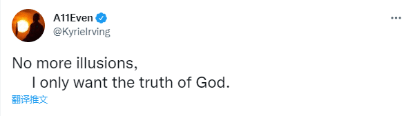 篮网球星欧文更新社交媒体,疑似回应纽约防疫规定限制他在主场打比赛,发推写道:不再幻想了,我只想要上帝的真理。