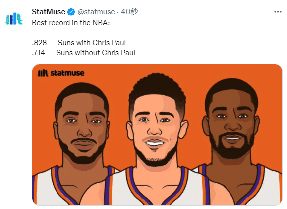 赢球后太阳58胜14负仍笑傲全联盟,不管有没有保罗,这支太阳队都打出联盟最好的战绩,据统计,有保罗时太阳胜率82.8%,没有保罗时太阳胜率71.4%,这都是联盟最好的胜率。