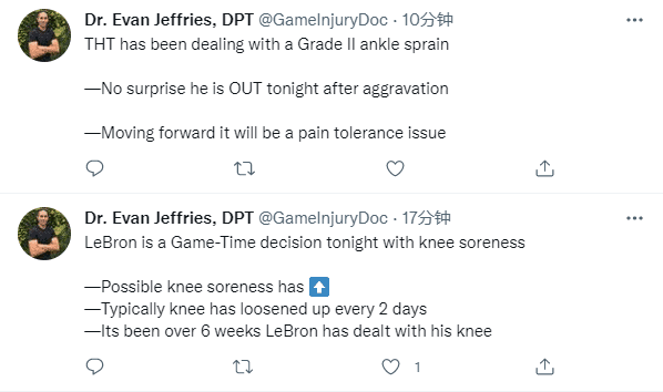 对于詹姆斯赛前决定出战,医学专家Evan Jeffries表示可能他的膝盖疼痛增加,已经受到膝伤困扰超过6周;该专家还谈到塔克的情况,他的缺阵意味着伤势恶化,运动时会感到疼痛;此前塔克透露自己曾遭遇脚踝二级扭伤。