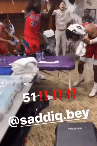 活塞更衣室疯狂庆祝曝光!贝51+10狂刷神迹,全队激情泼水狂欢