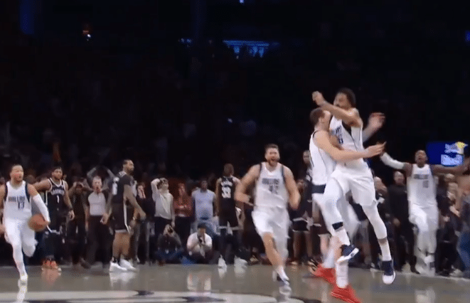 完成绝杀之后,丁威迪疯狂庆祝,他和东契奇撞胸庆祝,而独行侠球员纷纷跳起来冲向丁威迪祝贺。丁威迪朝着篮网观众席激情怒吼,宣泄自己对于老东家的情绪。而篮网这边,杜兰特等人失落离场,杜兰特几乎成为英雄,但最后时刻,他只能品尝失利的苦果。