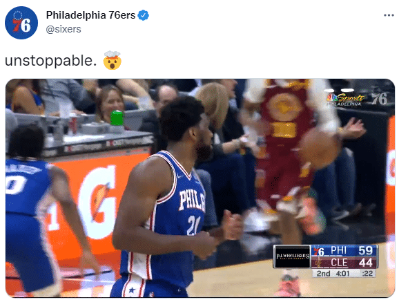 第二节,哈登单核带队出战,强硬2+1打开得分账户,之后外线造莫布利犯规,三罚两中继续涨分,恩比德上场后,面对三人包夹仍投进撤步三分,76人官方直呼:不可阻挡;打着打着哈登三分也开张,上半场最后一攻,哈登助攻哈里斯投进压哨三分,76人半场72-59领先13分,哈登10分5助攻,恩比德20分11篮板。