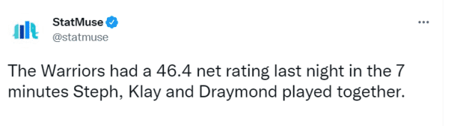 美媒公布了一组数据,显示追梦的回归对库里有多么重要的意义!库里在生日夜之战轰下47分,而其中41分是在和追梦同场的15分钟内完成的,实在太疯狂了!