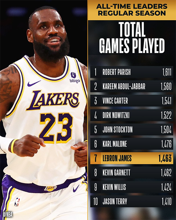 今日一战,詹姆斯又迎来里程碑——出战生涯第1463场常规赛,超越NBA名宿加内特1462场,升至NBA历史第7位;詹姆斯上半场命中2记三分,生涯三分命中数为2352记,暂时力压汤普森排在历史三分榜第7位,克莱上半场没有三分进账。