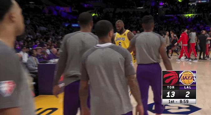 没想到的是在首节开始之后,湖人0-9开局,詹姆斯上篮但无奈猛龙瞬间将优势拉大到两位数,以2-13落后于对手。随后猛龙又一波6-0,直接19-2再度打停湖人,主场的球迷也都感到非常无奈。