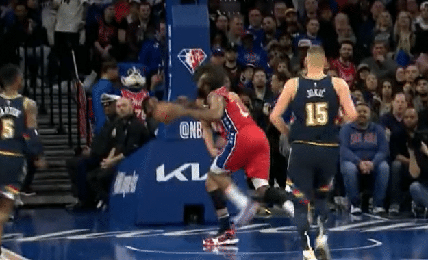 NBA扎心一幕!被拽翻却遭无视,哈登摊手不敢信,里弗斯暴跳如雷