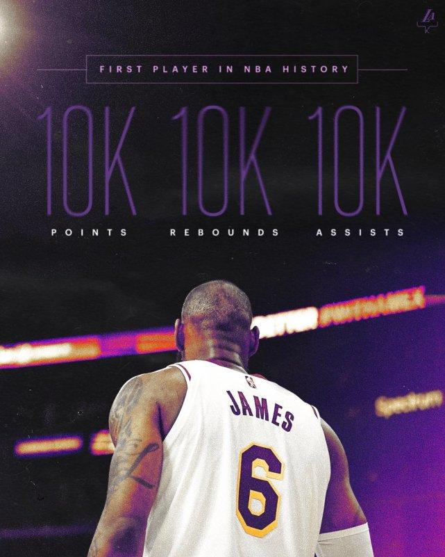来源:JRS直播网03-14 16:09JRS直播网讯 北京时间3月14日,湖人客场对太阳一战的第二节,詹姆斯助攻安东尼得分,这是他本场个人第2次助攻,生涯总助攻数达到10000次,从而完成了一项此前没有人做到过的神迹:30000分+10000篮板+10000助攻。NBA官网调侃这项成就可以称为“职业生涯总三双”。在这个30000+10000+10000的俱乐部里,现在只有詹姆斯一人。这项成就有多牛?NBA官网用数据进行揭秘。