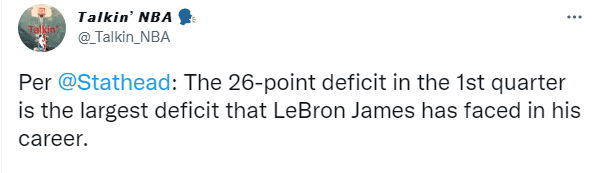 湖人客场被联盟第一打爆了,首节22-48狂输26分,三节狂丢104分;詹姆斯迎来30000分+10000助攻+10000篮板历史第一里程碑,但湖人首节狂输26分是詹姆斯所在球队职业生涯单节最大输分,湖人糟糕表现被名嘴吐槽。