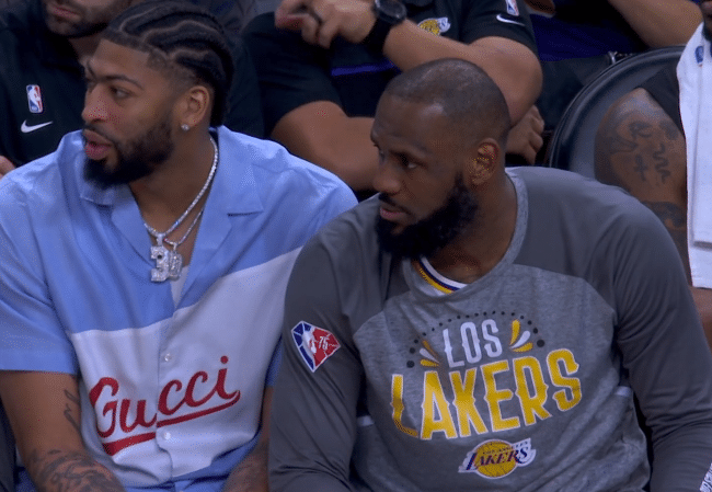 湖人第一节22-48狂输26分,之后太阳把湖人按在地板上疯狂摩擦,虽然湖人进攻有所反弹,但防守太糟糕,三节打完湖人落后29分,末节早早沦为垃圾时间,詹姆斯坐在场边很放松,用衣领捂嘴和浓眉闲聊,比赛结束后,詹姆斯满脸笑容引热议。