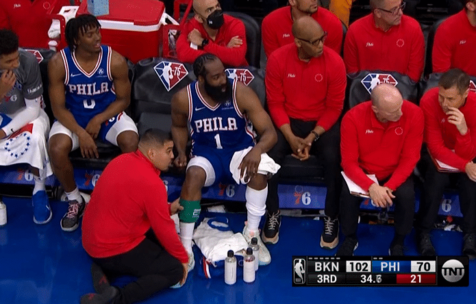 哈登76人生涯首败,被杜兰特和欧文两大前队友打爆。