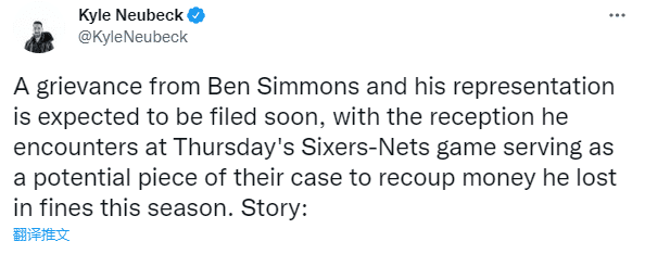 据美记Nick Friedell报道,西蒙斯仍未获准训练,目前尚不清楚他何时能够开始训练。
