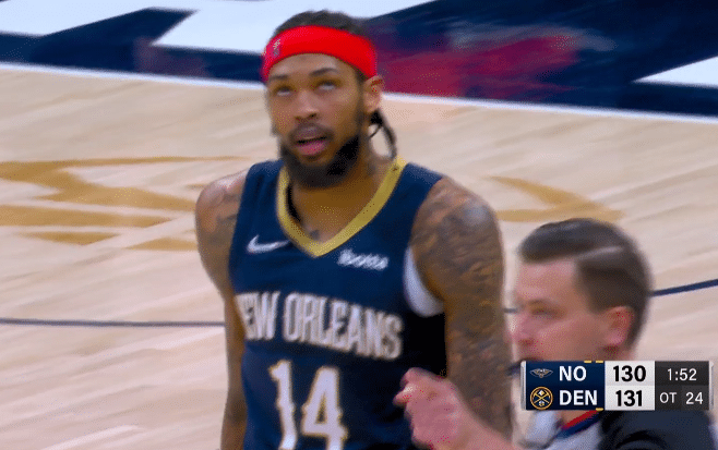 加时赛,约基奇强打得分,麦科勒姆突破上篮、英格拉姆急停中投,琼斯抢断反击,鹈鹕6-0领先4分;莫里斯三分止血,戈登二次补篮,关键时刻,英格拉姆进攻犯规,莺歌踩线失误,最终掘金138-130加时拿下胜利,约基奇轰下超级三双,英格拉姆关键时刻连续犯错。