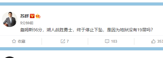 苏群:詹姆斯56分,湖人战胜勇士,终于停止下坠,是因为地狱没有19层吗?