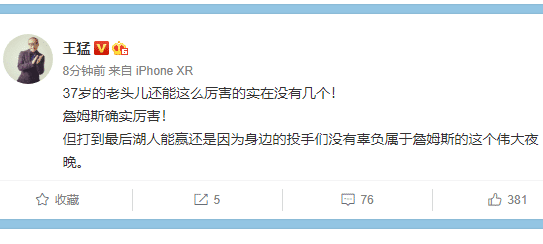 王猛:37岁的老头儿还能这么厉害的实在没有几个!詹姆斯确实厉害!但打到最后湖人能赢还是因为身边的投手们没有辜负属于詹姆斯的这个伟大夜晚。