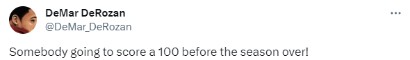 过去一周,联盟两次同一天出现60+和70+的情况,这也是历史上第5次同一天两人同砍60+;看到联盟频频出现高分的情况,公牛球星德罗赞感慨写道:在这个赛季结束之前有人会得到100分。