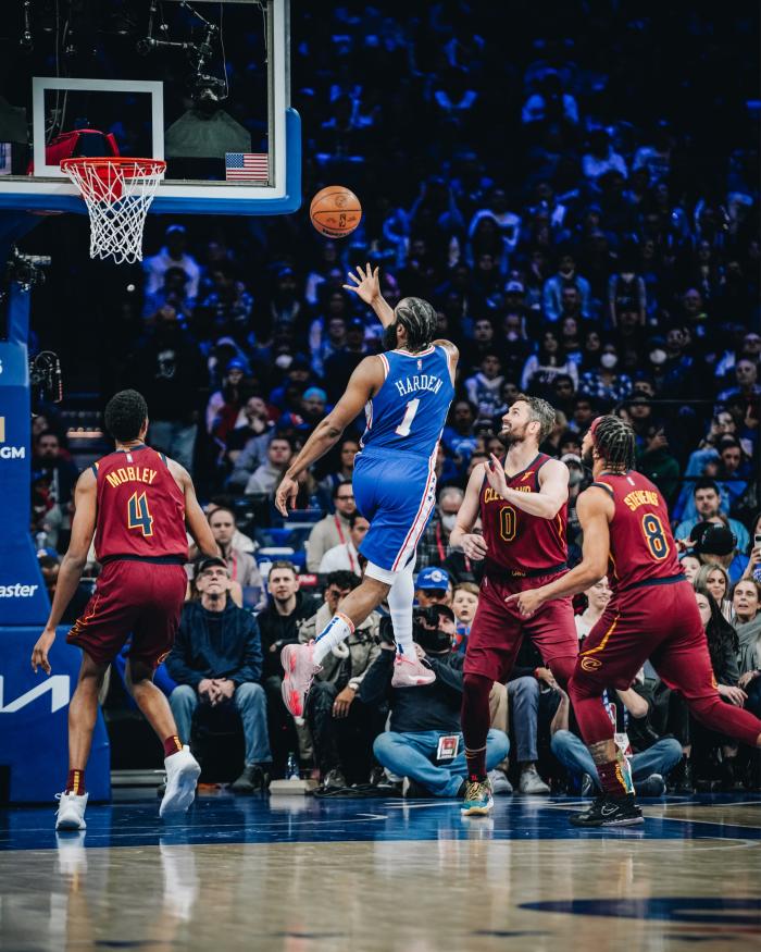 首节比赛,骑士开场火力全开,随着乐福连续命中两记三分,骑士39-18足足领先21分;哈登第一节前7分钟没有出手;哈登再次上场后,连续两次助攻尼昂轰进三分,之后哈登强硬2+1终于得分,招牌后撤步三分也有,76人疯狂反扑。