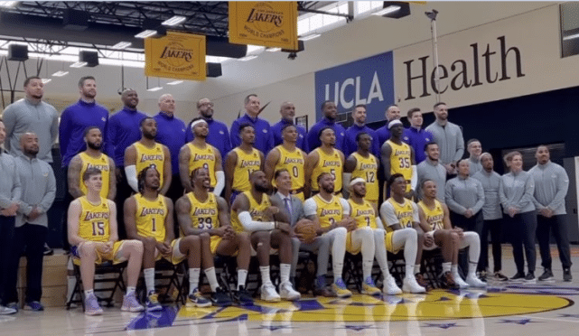 湖人全队大合影出炉!佩林卡C位詹皇浓眉坐其两侧,威少站第二排