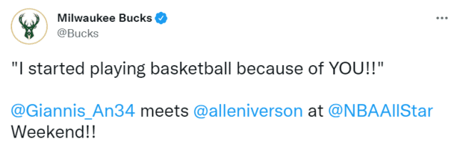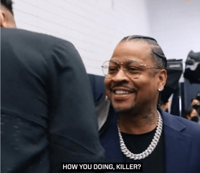 字母哥很快解释道:“我不想打扰你,我只是想告诉你,我看过你的故事,我看过你的纪录片。你在纪录片里说‘我是因为MJ(乔丹)开始打篮球’,我是因为你开始打篮球!”艾弗森再次感谢:“我喜欢这个,兄弟。”字母哥再次感慨:“太疯狂了!”