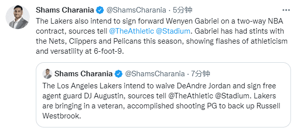 湖人连续三笔操作曝光,据名记shams报道,湖人计划裁掉德安德烈-乔丹,腾出位置签约DJ-奥古斯丁,湖人计划引援一位有经验的控卫来担任威少的替补,湖人还计划更换一名双向合同球员。