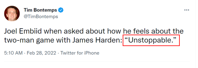 两战狂轰176分!“马大哈”组合火力太猛,恩比德豪言:不可阻挡
