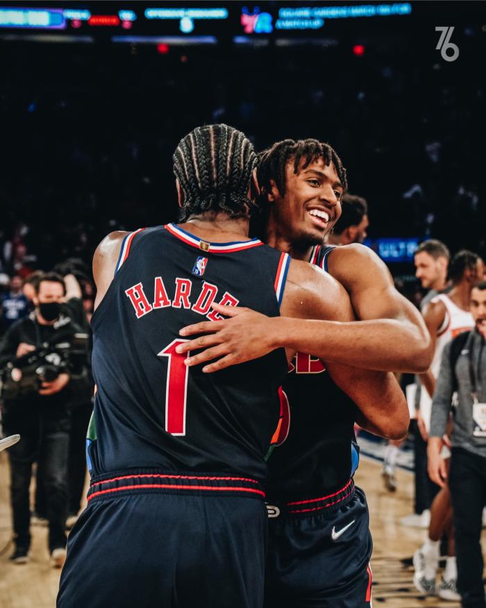 费城76人客场125-109大胜尼克斯,恩比德全场18投7中、罚球27中23轰下37分9篮板3助攻4盖帽1抢断,哈登则是14投8中、罚球10中10狂砍29分16助攻10篮板5抢断,76人双巨一战狂刷历史纪录,冲上热搜引热议,恩比德直呼:不可阻挡!